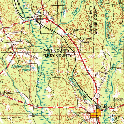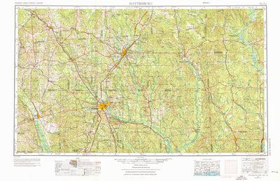 A 1953 historical topographic map of Hattiesburg in Mississippi produced by the United States Geological Survey (USGS). It shows contour lines, place names, water bodies and roads. Map services and data available from U.S. Geological Survey, National Geospatial Program. Map was obtained from http...