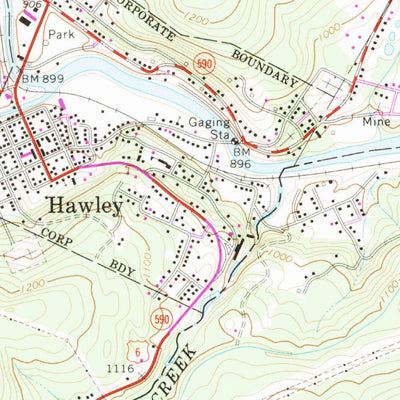 A 1966 historical topographic map of Hawley in Pennsylvania produced by the United States Geological Survey (USGS). It shows contour lines, place names, water bodies and roads. Map services and data available from U.S. Geological Survey, National Geospatial Program. Map was obtained from https://...