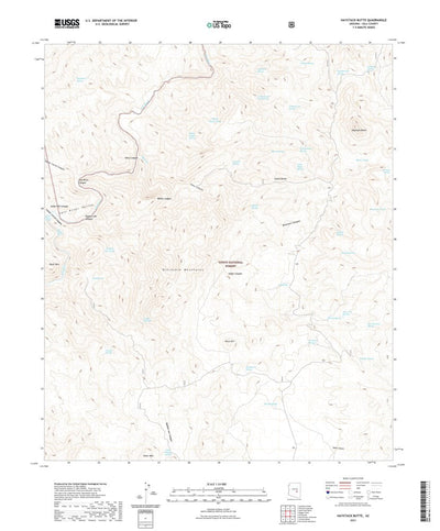 A digital topographic map of Haystack Butte in Arizona produced by the United States Geological Survey (USGS) in 2021. The map is part of the National Map series of 7.5 minute quadrangle maps. It shows contour lines, place names, water bodies and roads. Map services and data available from U.S. G...