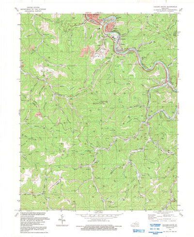 A 1992 historical topographic map of Hazard South in Kentucky produced by the United States Geological Survey (USGS). It shows contour lines, place names, water bodies and roads. Map services and data available from U.S. Geological Survey, National Geospatial Program. Map was obtained from https:...