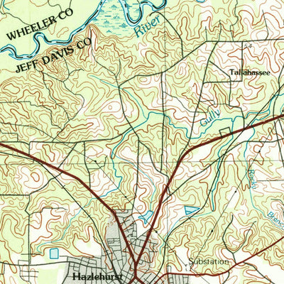 A 1979 historical topographic map of Hazlehurst in Georgia produced by the United States Geological Survey (USGS). It shows contour lines, place names, water bodies and roads. Map services and data available from U.S. Geological Survey, National Geospatial Program. Map was obtained from https://w...