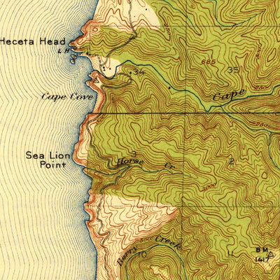 A 1920 historical topographic map of Heceta Head in Oregon produced by the United States Geological Survey (USGS). It shows contour lines, place names, water bodies and roads. Map services and data available from U.S. Geological Survey, National Geospatial Program. Map was obtained from https://w...