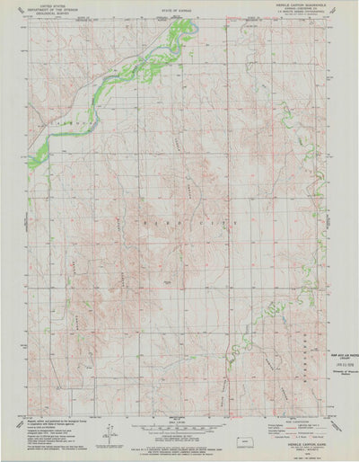 A 1976 historical topographic map of Henkle Canyon in Kansas produced by the United States Geological Survey (USGS). It shows contour lines, place names, water bodies and roads. Map services and data available from U.S. Geological Survey, National Geospatial Program. Map was obtained from https:/...