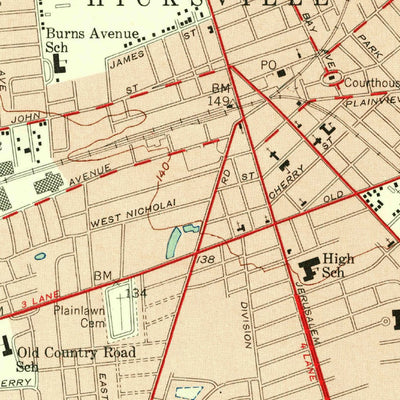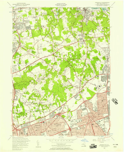 A 1954 historical topographic map of Hicksville in New York produced by the United States Geological Survey (USGS). It shows contour lines, place names, water bodies and roads. Map services and data available from U.S. Geological Survey, National Geospatial Program. Map was obtained from https://...