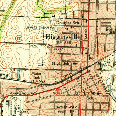 A 1951 historical topographic map of Higginsville in Missouri produced by the United States Geological Survey (USGS). It shows contour lines, place names, water bodies and roads. Map services and data available from U.S. Geological Survey, National Geospatial Program. Map was obtained from https:...