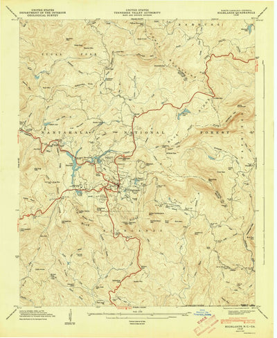 A 1947 historical topographic map of Highlands in North Carolina produced by the United States Geological Survey (USGS). It shows contour lines, place names, water bodies and roads. Map services and data available from U.S. Geological Survey, National Geospatial Program. Map was obtained from htt...