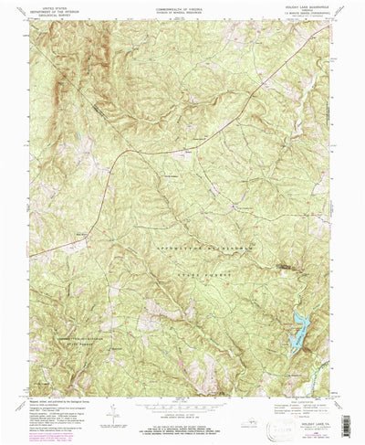 A 1968 historical topographic map of Holiday Lake in Virginia produced by the United States Geological Survey (USGS). It shows contour lines, place names, water bodies and roads. Map services and data available from U.S. Geological Survey, National Geospatial Program. Map was obtained from https:...