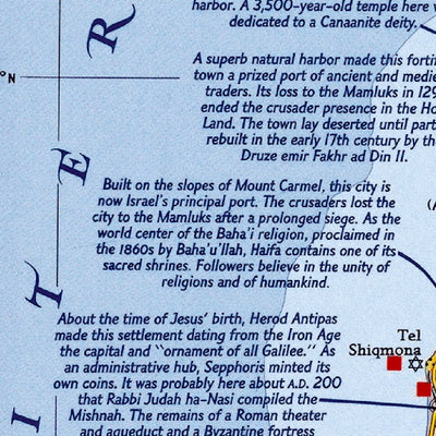 This fascinating map is an in-depth look at the faiths, peoples, and politics that have shaped this historic region. Features a detailed political map overlayed with facts about significant religious sites.