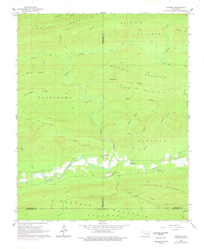 A 1966 historical topographic map of Honobia in Oklahoma produced by the United States Geological Survey (USGS). It shows contour lines, place names, water bodies and roads. Map services and data available from U.S. Geological Survey, National Geospatial Program. Map was obtained from https://www...