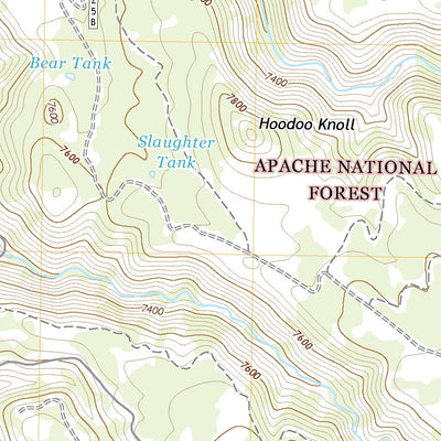 A digital topographic map of Hoodoo Knoll in Arizona produced by the United States Geological Survey (USGS) in 2021. The map is part of the National Map series of 7.5 minute quadrangle maps. It shows contour lines, place names, water bodies and roads. Map services and data available from U.S. Geo...