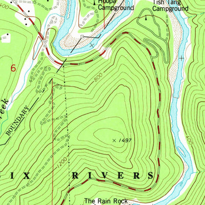 A 1979 historical topographic map of Hoopa in California produced by the United States Geological Survey (USGS). It shows contour lines, place names, water bodies and roads. Map services and data available from U.S. Geological Survey, National Geospatial Program. Map was obtained from https://www...
