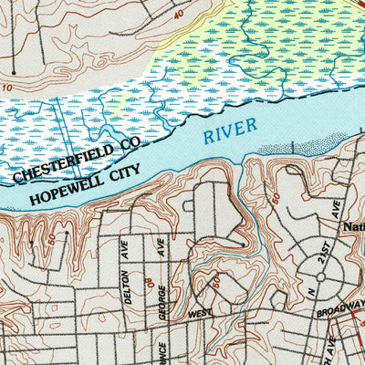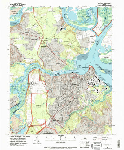 A 1994 historical topographic map of Hopewell in Virginia produced by the United States Geological Survey (USGS). It shows contour lines, place names, water bodies and roads. Map services and data available from U.S. Geological Survey, National Geospatial Program. Map was obtained from https://ww...