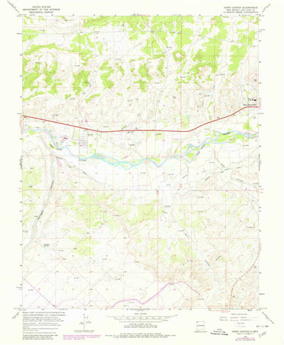 A 1965 historical topographic map of Horn Canyon in New Mexico produced by the United States Geological Survey (USGS). It shows contour lines, place names, water bodies and roads. Map services and data available from U.S. Geological Survey, National Geospatial Program. Map was obtained from https...