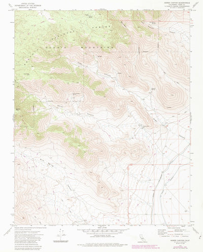 A 1972 historical topographic map of Horse Canyon in California produced by the United States Geological Survey (USGS). It shows contour lines, place names, water bodies and roads. Map services and data available from U.S. Geological Survey, National Geospatial Program. Map was obtained from http...