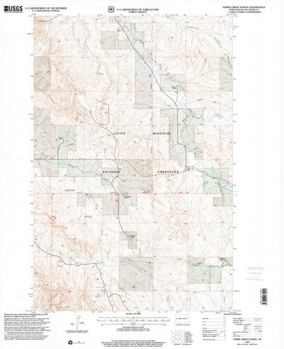A 1997 historical topographic map of Horse Creek School in North Dakota produced by the United States Geological Survey (USGS). It shows contour lines, place names, water bodies and roads. Map services and data available from U.S. Geological Survey, National Geospatial Program. Map was obtained f...