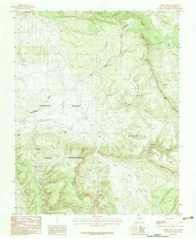 A 1983 historical topographic map of Horse Lake in New Mexico produced by the United States Geological Survey (USGS). It shows contour lines, place names, water bodies and roads. Map services and data available from U.S. Geological Survey, National Geospatial Program. Map was obtained from https:...
