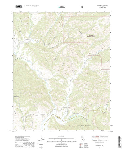 A digital topographic map of Huasna Peak in California produced by the United States Geological Survey (USGS) in 2021. The map is part of the National Map series of 7.5 minute quadrangle maps. It shows contour lines, place names, water bodies and roads. Map services and data available from U.S. G...
