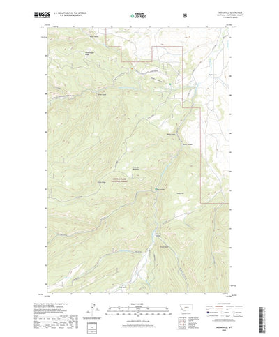 A digital topographic map of Indian Hill in Montana produced by the United States Geological Survey (USGS) in 2020. The map is part of the National Map series of 7.5 minute quadrangle maps. It shows contour lines, place names, water bodies and roads. Map services and data available from U.S. Geol...