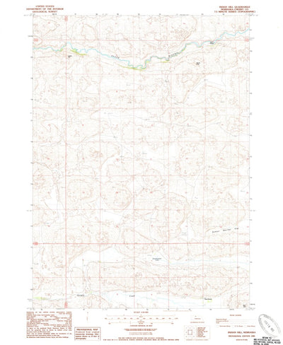 A 1985 historical topographic map of Indian Hill in Nebraska produced by the United States Geological Survey (USGS). It shows contour lines, place names, water bodies and roads. Map services and data available from U.S. Geological Survey, National Geospatial Program. Map was obtained from https:/...