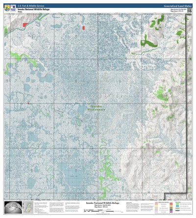 This is a map of Innoko National Wildlife Refuge within the State of Alaska. It depicts the refuge and wilderness boundaries, hillshaded topography, and Federal, State of Alaska, and private ownership boundaries within Innoko NWR.