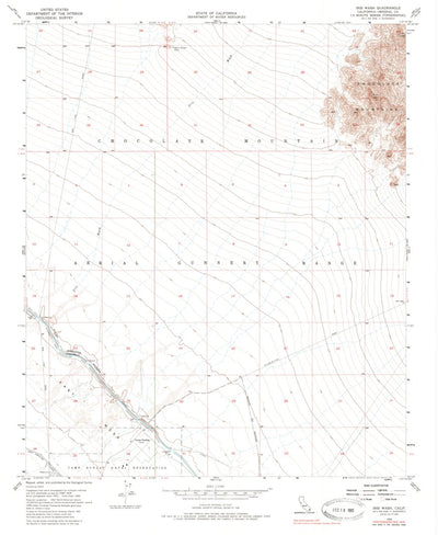 A 1956 historical topographic map of Iris Wash in California produced by the United States Geological Survey (USGS). It shows contour lines, place names, water bodies and roads. Map services and data available from U.S. Geological Survey, National Geospatial Program. Map was obtained from https:/...