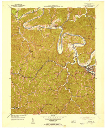 A 1951 historical topographic map of Jackson in Kentucky produced by the United States Geological Survey (USGS). It shows contour lines, place names, water bodies and roads. Map services and data available from U.S. Geological Survey, National Geospatial Program. Map was obtained from https://www...
