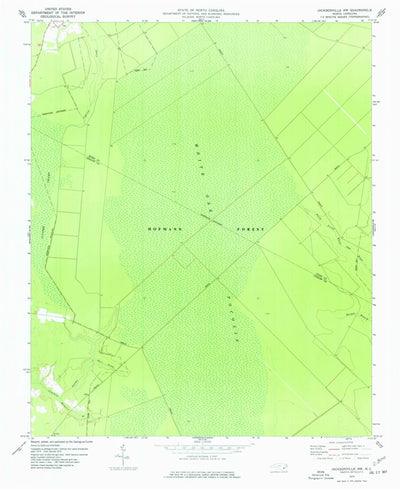 A 1975 historical topographic map of Jacksonville NW in North Carolina produced by the United States Geological Survey (USGS). It shows contour lines, place names, water bodies and roads. Map services and data available from U.S. Geological Survey, National Geospatial Program. Map was obtained fr...