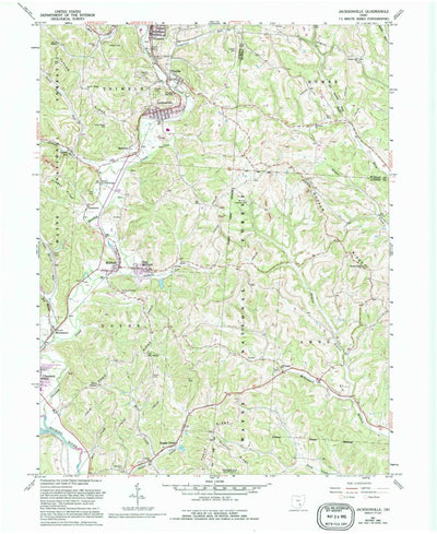 A 1961 historical topographic map of Jacksonville in Ohio produced by the United States Geological Survey (USGS). It shows contour lines, place names, water bodies and roads. Map services and data available from U.S. Geological Survey, National Geospatial Program. Map was obtained from https://ww...