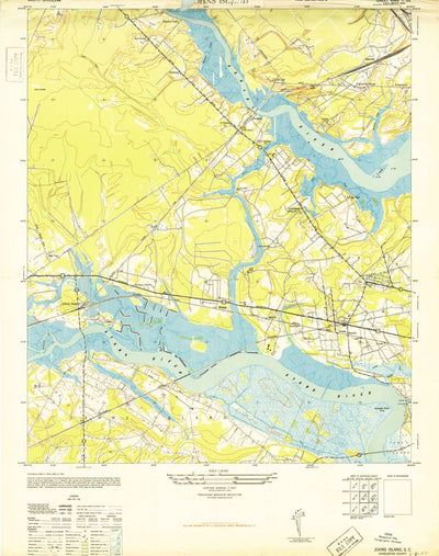 A 1948 historical topographic map of Johns Island in South Carolina produced by the United States Geological Survey (USGS). It shows contour lines, place names, water bodies and roads. Map services and data available from U.S. Geological Survey, National Geospatial Program. Map was obtained from ...