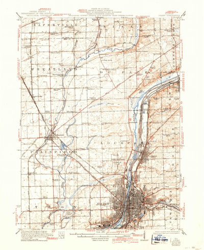 A 1923 historical topographic map of Joliet in Illinois produced by the United States Geological Survey (USGS). It shows contour lines, place names, water bodies and roads. Map services and data available from U.S. Geological Survey, National Geospatial Program. Map was obtained from https://www....
