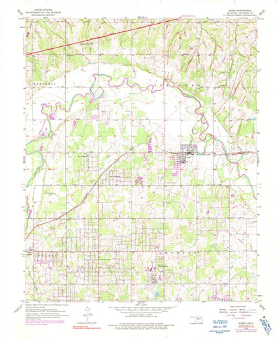 A 1955 historical topographic map of Jones in Oklahoma produced by the United States Geological Survey (USGS). It shows contour lines, place names, water bodies and roads. Map services and data available from U.S. Geological Survey, National Geospatial Program. Map was obtained from https://www.s...