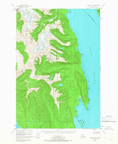 A 1948 historical topographic map of Juneau B-4 in Alaska produced by the United States Geological Survey (USGS). It shows contour lines, place names, water bodies and roads. Map services and data available from U.S. Geological Survey, National Geospatial Program. Map was obtained from https://ww...