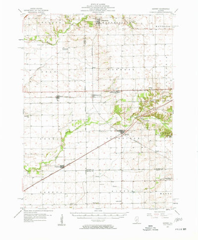A 1957 historical topographic map of Kenney in Illinois produced by the United States Geological Survey (USGS). It shows contour lines, place names, water bodies and roads. Map services and data available from U.S. Geological Survey, National Geospatial Program. Map was obtained from https://www....