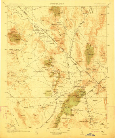 A 1912 historical topographic map of Kingman W in California produced by the United States Geological Survey (USGS). It shows contour lines, place names, water bodies and roads. Map services and data available from U.S. Geological Survey, National Geospatial Program. Map was obtained from https:/...