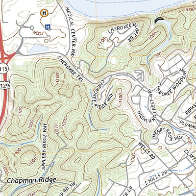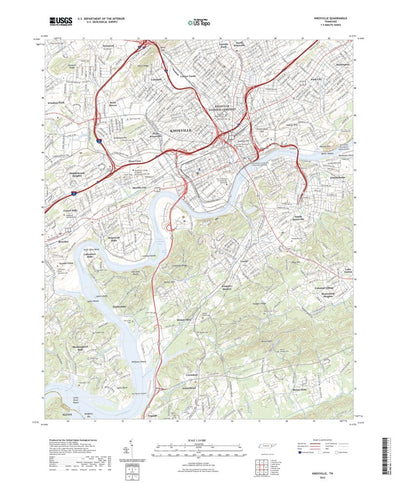 A digital topographic map of Knoxville in Tennessee produced by the United States Geological Survey (USGS) in 2022. The map is part of the National Map series of 7.5 minute quadrangle maps. It shows contour lines, place names, water bodies and roads. Map services and data available from U.S. Geol...