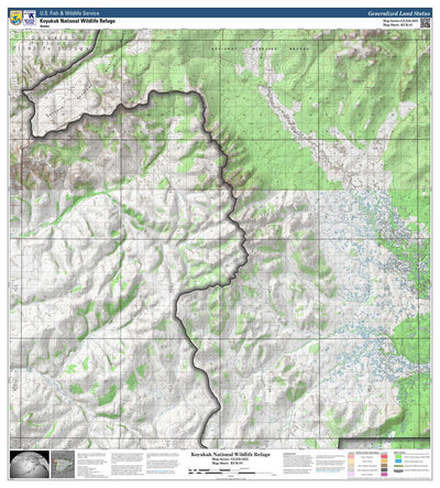 This is a map of Koyukuk National Wildlife Refuge within the State of Alaska. It depicts the refuge and wilderness boundaries, hillshaded topography, and Federal, State of Alaska, and private ownership boundaries within Koyukuk NWR.