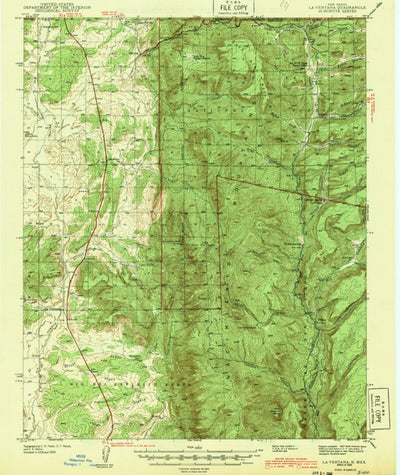 A 1943 historical topographic map of La Ventana in New Mexico produced by the United States Geological Survey (USGS). It shows contour lines, place names, water bodies and roads. Map services and data available from U.S. Geological Survey, National Geospatial Program. Map was obtained from https:...