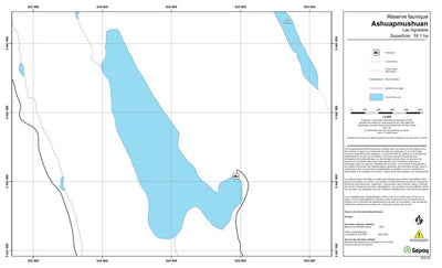 Carte de lac de la Sépaq. Selon les données disponibles, la carte peut présenter diverses informations telles que la bathymétrie ou les sites favorables à la pêche.