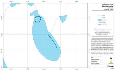 Carte de lac de la Sépaq. Selon les données disponibles, la carte peut présenter diverses informations telles que la bathymétrie ou les sites favorables à la pêche.