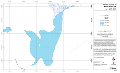 Carte de lac de la Sépaq. Selon les données disponibles, la carte peut présenter diverses informations telles que la bathymétrie ou les sites favorables à la pêche.