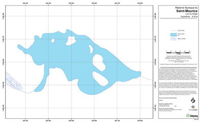 Carte de lac de la Sépaq. Selon les données disponibles, la carte peut présenter diverses informations telles que la bathymétrie ou les sites favorables à la pêche.