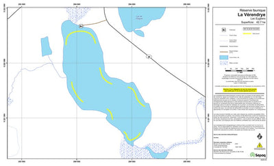 Carte de lac de la Sépaq. Selon les données disponibles, la carte peut présenter diverses informations telles que la bathymétrie ou les sites favorables à la pêche.