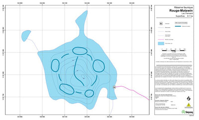 Carte de lac de la Sépaq. Selon les données disponibles, la carte peut présenter diverses informations telles que la bathymétrie ou les sites favorables à la pêche.
