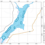 Carte de lac de la Sépaq. Selon les données disponibles, la carte peut présenter diverses informations telles que la bathymétrie ou les sites favorables à la pêche.