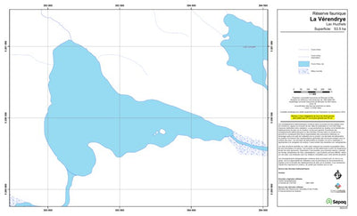 Carte de lac de la Sépaq. Selon les données disponibles, la carte peut présenter diverses informations telles que la bathymétrie ou les sites favorables à la pêche.