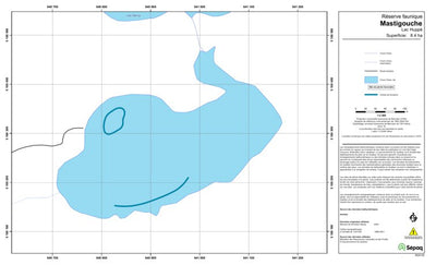 Carte de lac de la Sépaq. Selon les données disponibles, la carte peut présenter diverses informations telles que la bathymétrie ou les sites favorables à la pêche.