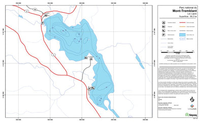 Carte de lac de la Sépaq. Selon les données disponibles, la carte peut présenter diverses informations telles que la bathymétrie ou les sites favorables à la pêche.