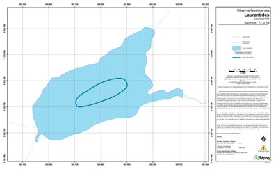 Carte de lac de la Sépaq. Selon les données disponibles, la carte peut présenter diverses informations telles que la bathymétrie ou les sites favorables à la pêche.
