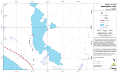 Carte de lac de la Sépaq. Selon les données disponibles, la carte peut présenter diverses informations telles que la bathymétrie ou les sites favorables à la pêche.