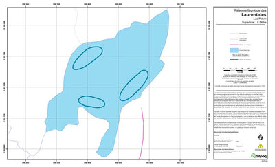 Carte de lac de la Sépaq. Selon les données disponibles, la carte peut présenter diverses informations telles que la bathymétrie ou les sites favorables à la pêche.